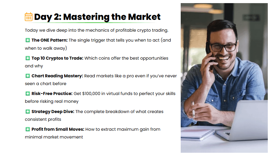 There’s no need for a background in finance, tech, or crypto. No software to install. No building websites. No selling products. No running ads. Just a clean, focused method for learning how to identify profitable crypto trades—before the trends explode.